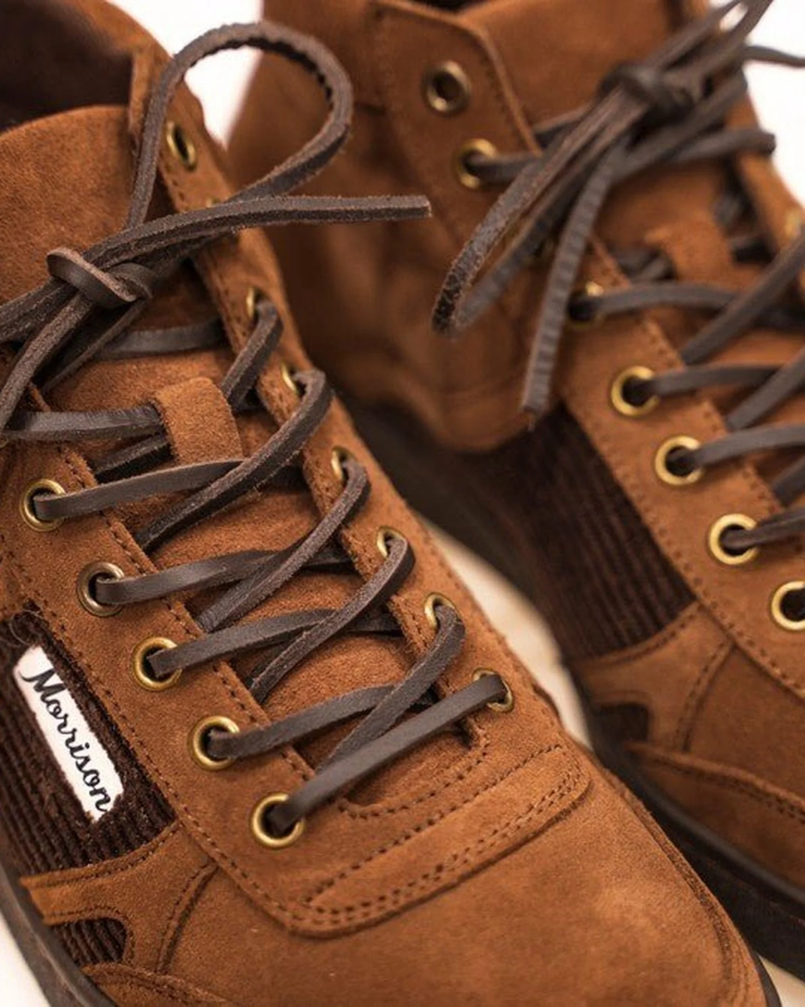 Cordones de piel marrón oscuro. Los mismos cordones que usamos en las Morrison Nineties Azteca o Moca.